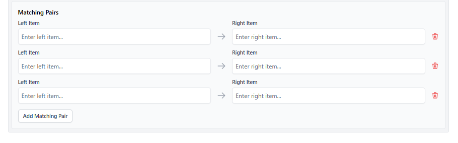 - Matching Pairs: List pairs to match (e.g., terms + definitions).