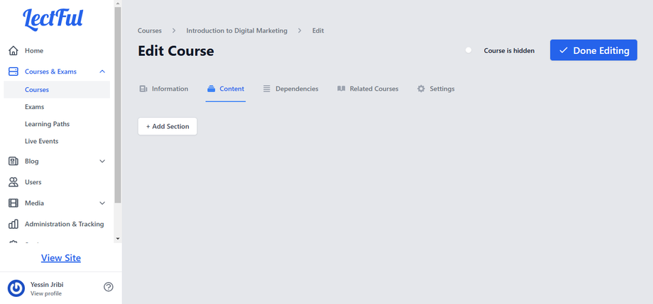 If the course has no sections yet, click “Add Section” and name it (e.g., "Module 1: Introduction").