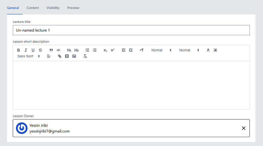 This guide explains how to add videos, articles, quizzes, assignments, forms, meetings, and iframe lessons to your courses in Lectful.