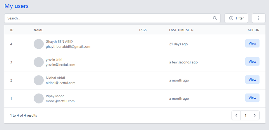 Click "View" on any user to access: