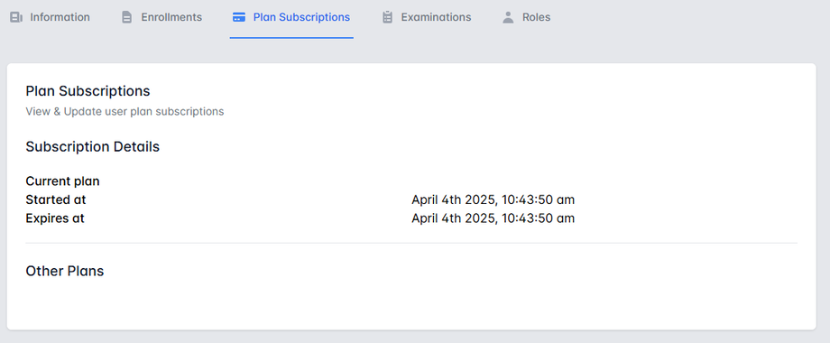 3. Plan Subscriptions Tab