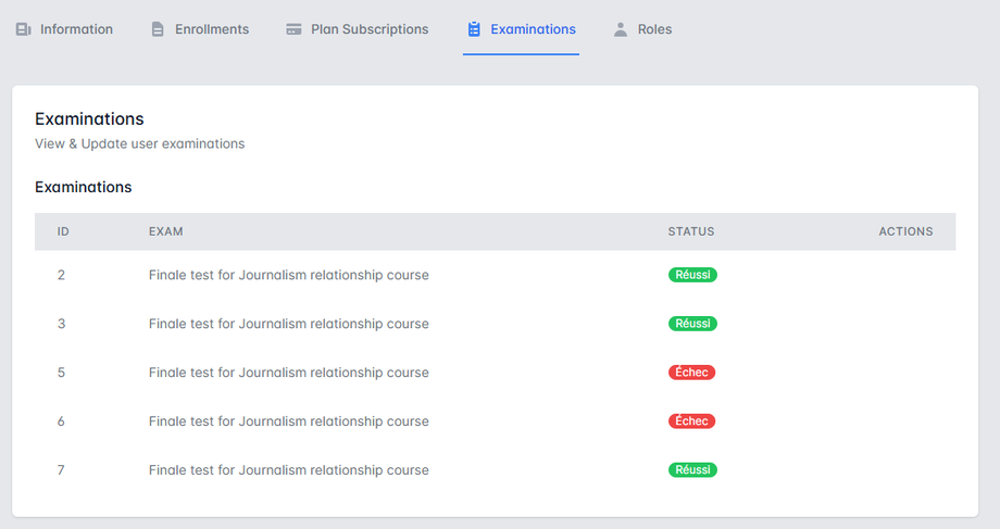 4. Examinations Tab